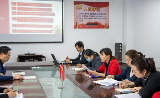 首先,潘莹同志带领全体党员教师重温入党誓词,坚守入党初心、坚定理想信念。