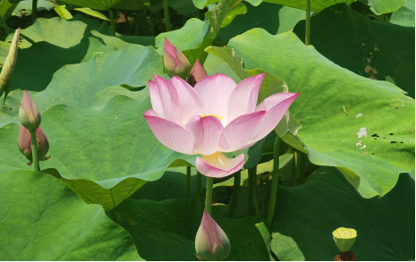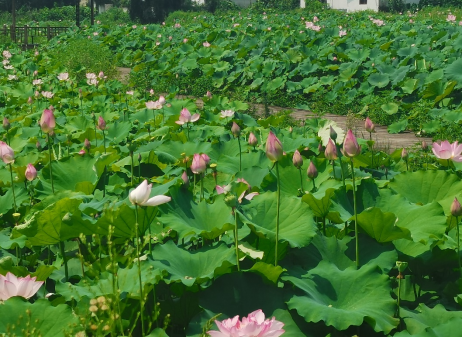正值夏日,石门村著名景点之一的“太空莲”百亩荷塘已经迎来荷花争相绽放的景象,使人不禁联想到 “出淤泥而不染,濯清涟而不妖” 的著名诗句。