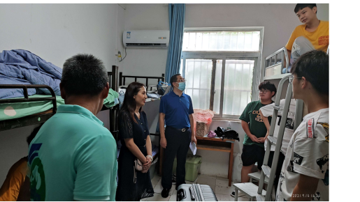 9月12-13日,会计学院2021级新生陆续报到。会计学院领导深入新生宿舍走访慰问,了解新生学习和生活情况,为他们送上学院的关怀与温暖。9月13日下午,会计学院党总支书记潘莹、院长易有明、副书记陈兵来到内8、内10、内11栋学生公寓,逐个寝室看望新生。