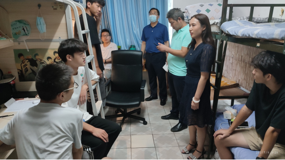 易院长仔细查看新生的被褥和寝室配套设施,了解同学们入校后的情况,询问大家生活上有没有困难,提醒同学们“天气炎热不要贪凉”、“有困难及时向辅导员反映”、“要记得经常给家人打电话报平安”,勉励大家尽快完成角色转换,适应新环境、融入新集体。