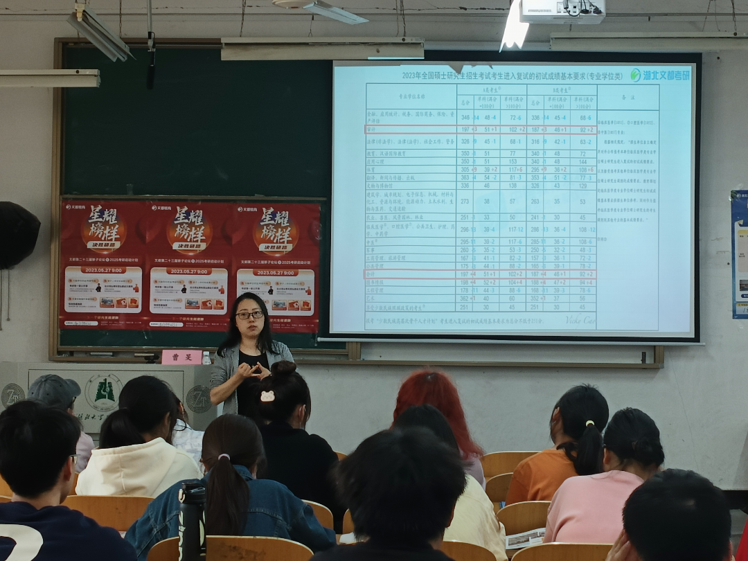 首先,曹老师为同学们简要分析了近8年的考研形势,深度解读了会计专业的考研趋势及湖北省内各院校的招生情况,让同学们对考研现状有了更清晰的认识。