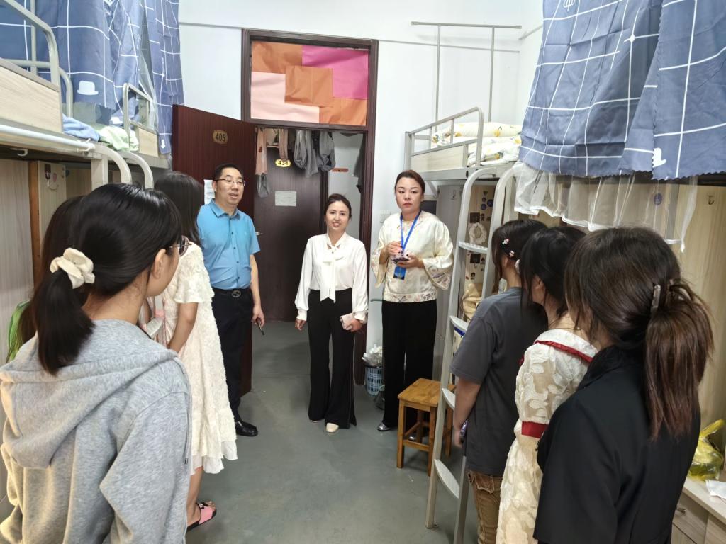 院领导一行还仔细查看了公寓楼设施设备,并特别提醒新生们要注意增强防火防盗防诈骗和用水用电等各方面安全防范意识,注意宿舍卫生和规律作息,养成良好的生活习惯,营造健康、舒适、和谐的寝室环境。