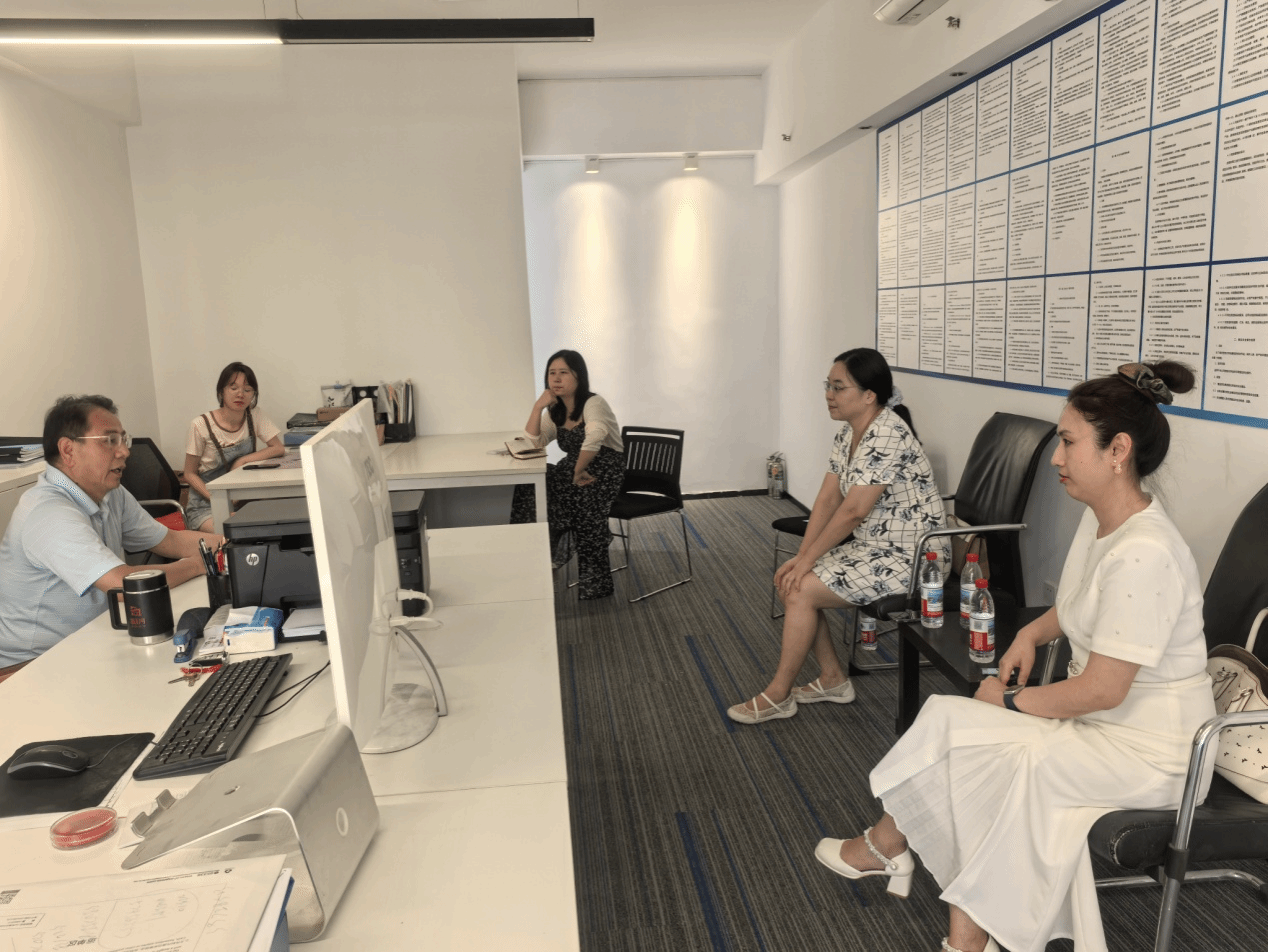 总经理郑立波分享了公司与武汉多所高校联合办学的探索与实践情况。他强调未来具备数据分析能力、行业洞察力及跨领域知识的复合型财务管理人才更具竞争力。潘莹书记、胡越垒老师就财会人才培养、毕业生就业等问题与郑立波总经理进行深入探讨,并考察了毕业生的工作职责和办公环境。
