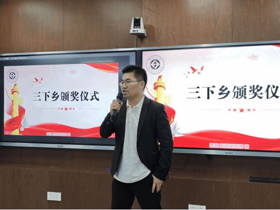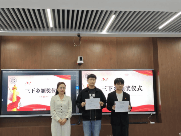 随后,进行“三下乡”社会实践优秀团队颁奖环节,“赓续党建红,守护生态绿”实践团、“育智暖龄,荆楚寻踪”实践团获一等奖;“乡遇非遗 知行筑梦”实践团队、“石韵薪传”实践队获二等奖;青春筑梦荆楚文化传承创新团队、赴武汉市“凝心铸魂学思党史国史”实践队、红安“凝心铸魂”实践队获三等奖;赴南昌“凝心铸魂学思党史国史”实践队获优秀奖,现场领导为获奖团队颁奖。