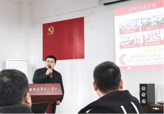学院党总支副书记李文希随后作党建与思政工作专题汇报。他介绍,学院坚持“立德树人”根本任务,围绕“内涵发展、全员提高”目标,构建“党建引领、思政护航、三全育人”工作体系,持续深化“访企拓岗”专项行动,为学子成长成才铺设“快车道”。