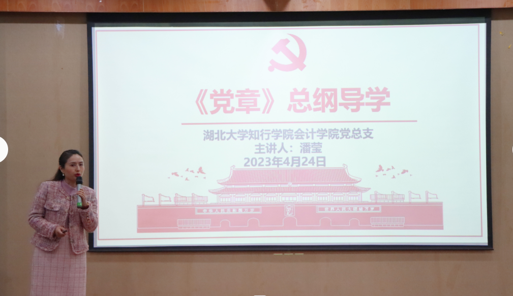 开班典礼后,会计学院党总支书记潘莹为第38期入党积极分子上第一堂党课。