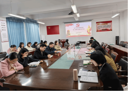 在讨论环节,党员教师结合教学科研和学生思政工作实际踊跃发言。桂玉娟老师表示:聚焦立德树人与攻坚任务,推动教育高质量发展。将专业教育与思政教育相结合,把学习成果转化为工作实效,坚持问题导向、目标导向、结果导向,在落实中见担当、见能力、见作风。