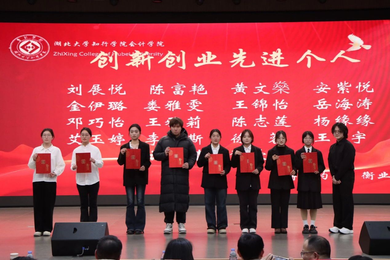 2025 年 12 月 26 日下午,湖北大学知行学院会计学院年终总结暨表彰大会在知远楼 201 报告厅隆重举行。学校党委副书记黄智凌,学校党委委员、会计学联系校领导、组织人事部部长汤姣云,图书馆馆长石松,党委宣传部部长刘锐,知行学院杰出校友代表张健先生亲友团,会计学院全体教职工、职能部门及兄弟学院的老师代表齐聚一堂,共同回顾会计学院师生2025 年的奋斗历程,见证榜样的荣耀时刻,共绘 2026 年的发展蓝图。